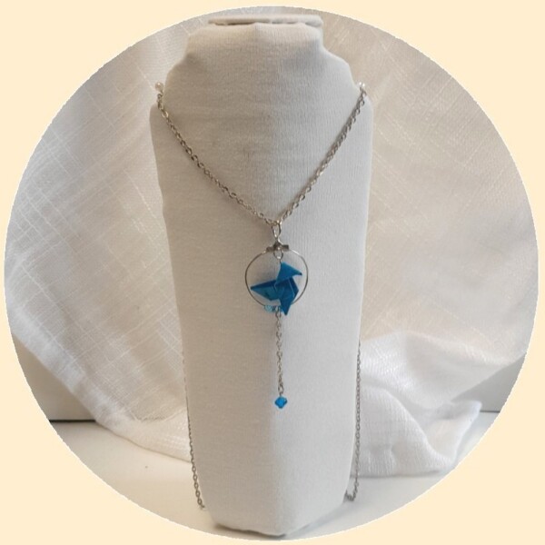 Pour une élégance maximale les perles de verre sont choisies avec minutie pour s’accorder à ce Collier origami oiseaux .